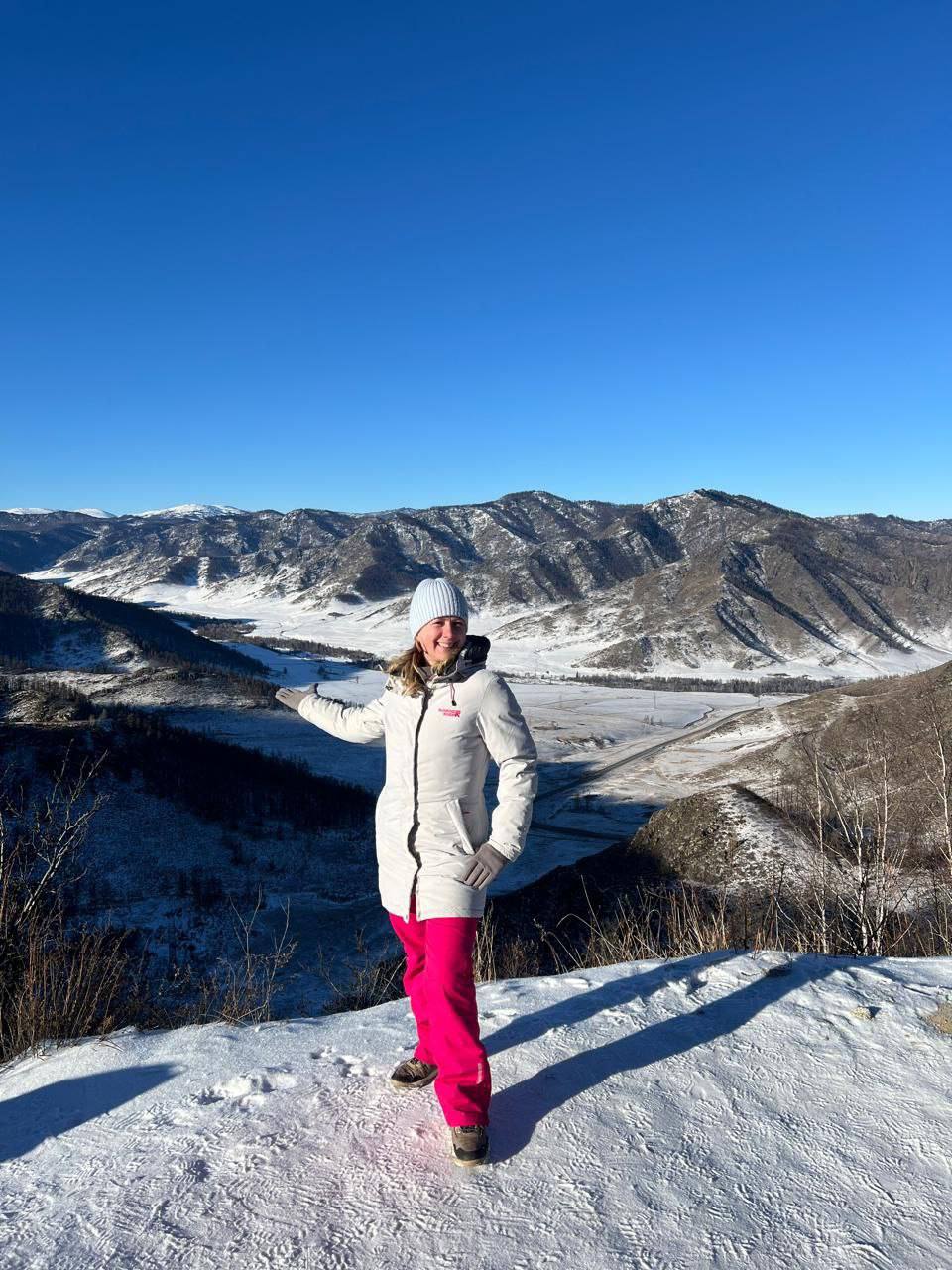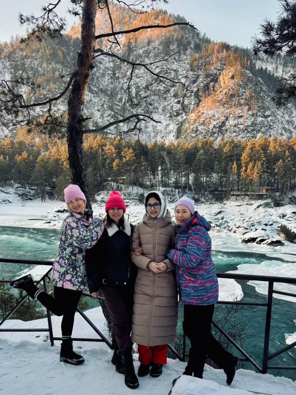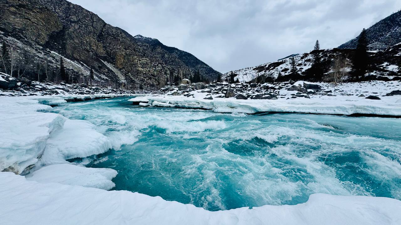 - 11:00 : Посещение Голубых озер "Глаза Катуни" — уникальное природное явление, доступное только в холодное время года. Эти озера с водой невероятного бирюзового цвета появляются осенью и зимой, когда уровень воды в Катуни понижается. Летом их невозможно увидеть — они скрыты под водами реки