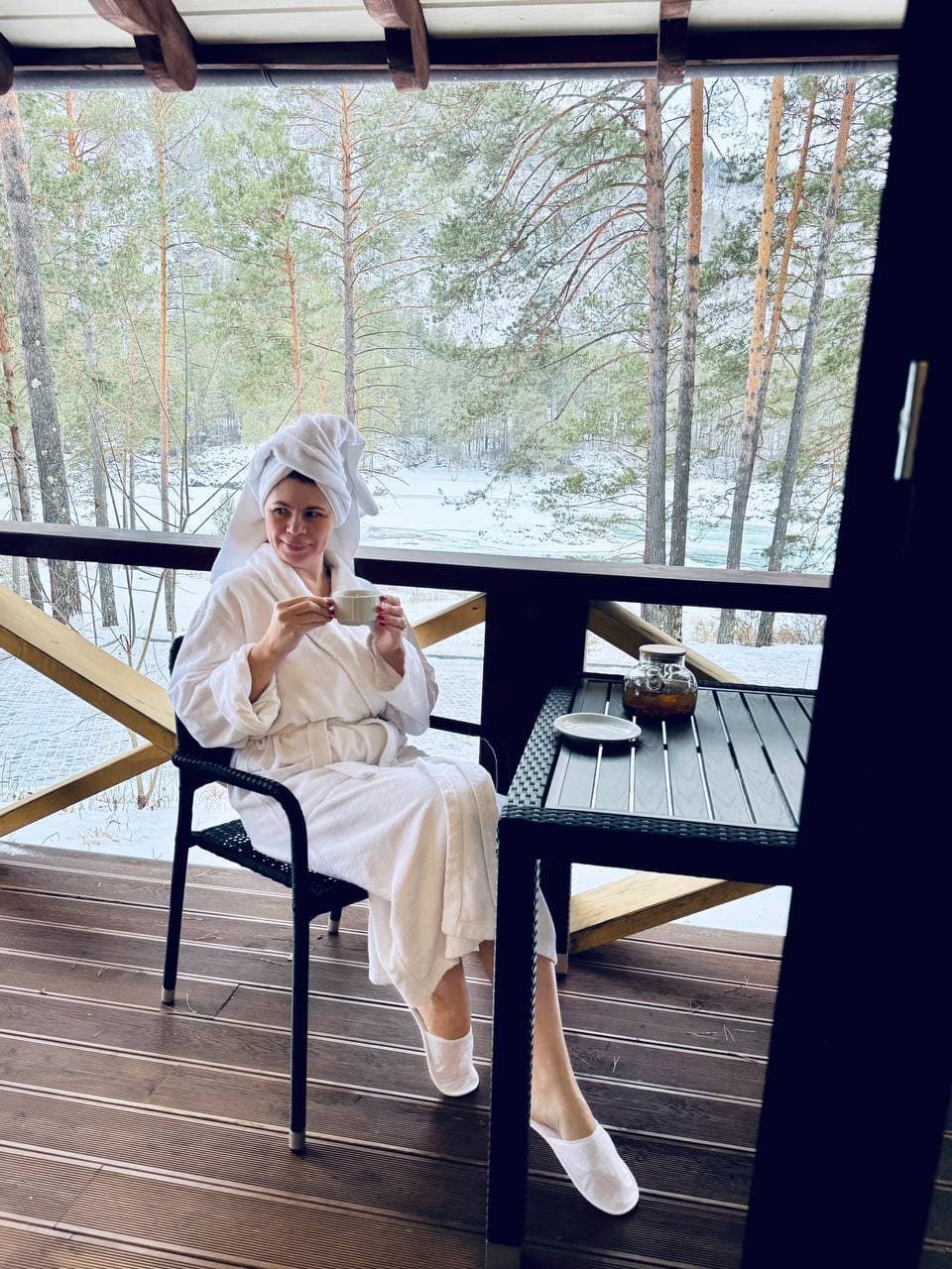 На берегу озер работает баня, где можно согреться после прогулки по морозному воздуху *(посещение бани оплачивается дополнительно)* - 15:00 : Заселение в отель — размещение в комфортабельных номерах с видом на заснеженные горы, свободное время для отдыха