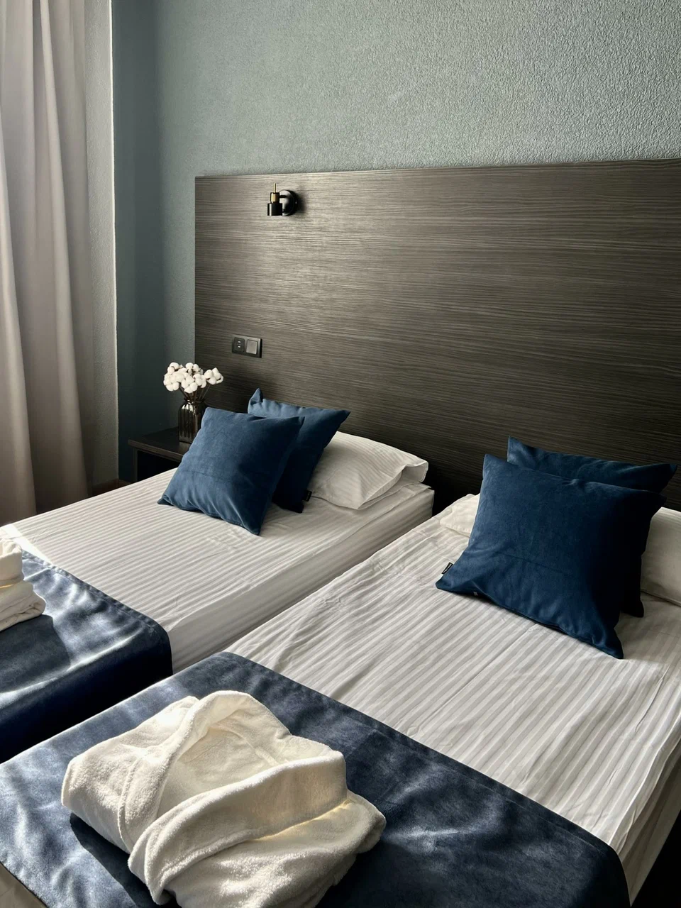 • TV, санузел, холодильник, гигиенические принадлежности, Wi-Fi, фен, утюг, гладильная доска, чайник, посуда и др.