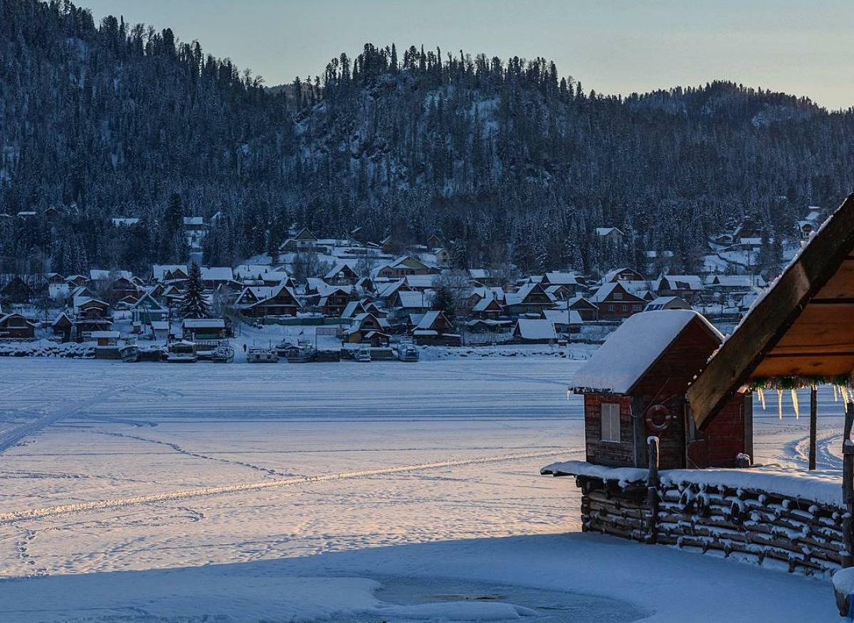Зимнее Телецкое озеро — это безмолвная гладь льда среди заснеженных гор, морозный воздух и завораживающие пейзажи, где природа кажется особенно величественной и чистой